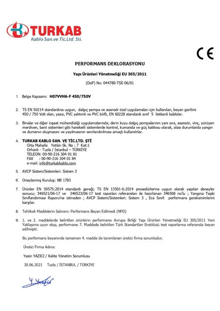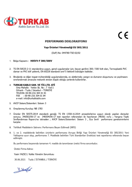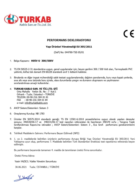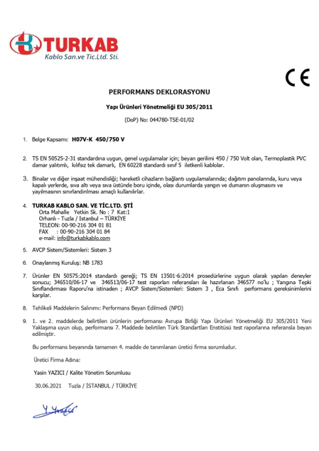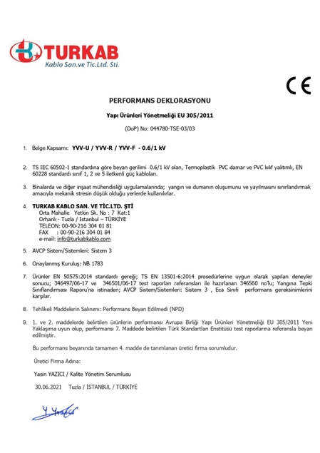 Müşteri isteklerini beklentilerinin de üzerinde karşılayabilmek, Müşteri ve tedarikçilerimizle karşılıklı faydaya dayalı ilişkiler kurmak, Sektörel teknolojiyi yakından takip ve transfer ederek eğitim ve bilgi düzeyini geliştirip, ürün/sistem kalitesinde sürekli iyileştirmeler yapmak, Ulusal ve uluslararası standartlar dahilinde kablo üretimi yapmak, Kalite Yönetim Sistemi şartlarına uymayı ve etkinliğinin sürekli iyileştirmesini taahhüt etmek, sektörel güven ve saygınlığımızı liderlik ile pekiştirerek var olan güven ve saygınlığımızı sürekli kılmak Kalite Politikamızdır.