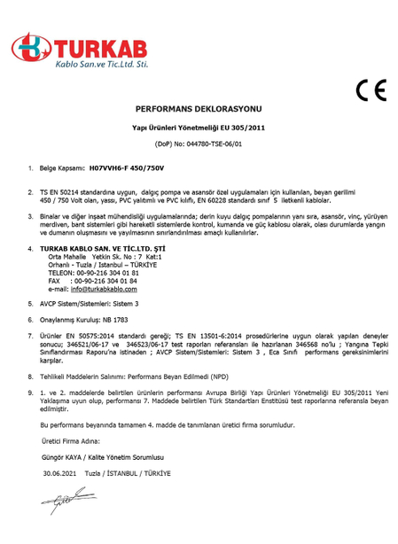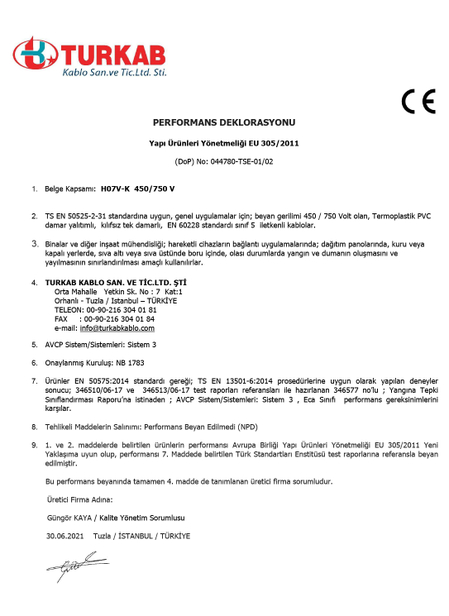 DoP PERFORMANS DEKLARASYONLARI
