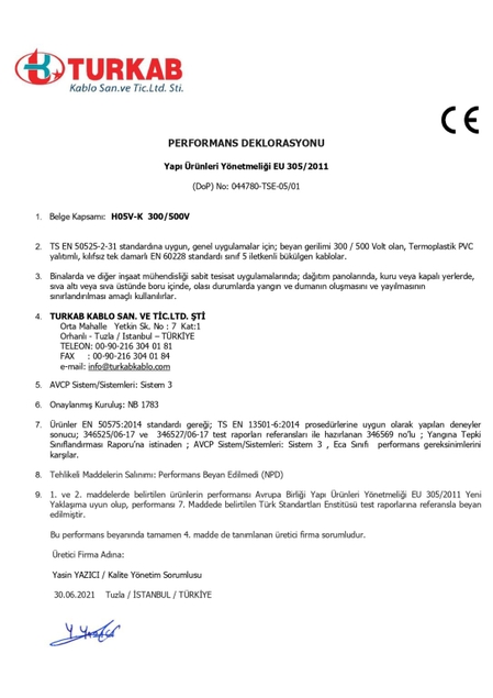 Müşteri isteklerini beklentilerinin de üzerinde karşılayabilmek, Müşteri ve tedarikçilerimizle karşılıklı faydaya dayalı ilişkiler kurmak, Sektörel teknolojiyi yakından takip ve transfer ederek eğitim ve bilgi düzeyini geliştirip, ürün/sistem kalitesinde sürekli iyileştirmeler yapmak, Ulusal ve uluslararası standartlar dahilinde kablo üretimi yapmak, Kalite Yönetim Sistemi şartlarına uymayı ve etkinliğinin sürekli iyileştirmesini taahhüt etmek, sektörel güven ve saygınlığımızı liderlik ile pekiştirerek var olan güven ve saygınlığımızı sürekli kılmak Kalite Politikamızdır.