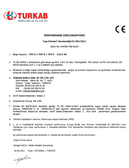 DoP PERFORMANS DEKLARASYONLARI