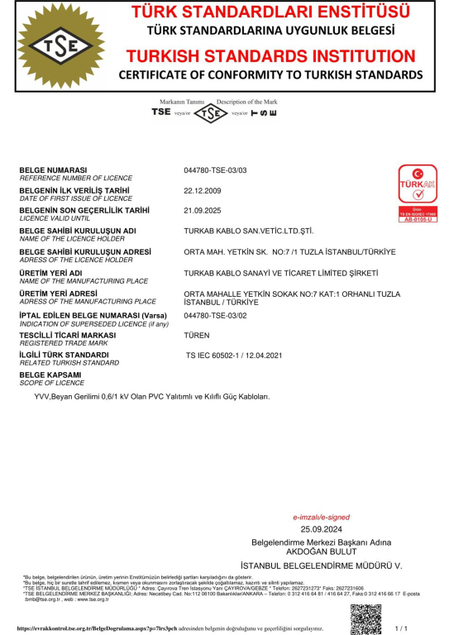 Müşteri isteklerini beklentilerinin de üzerinde karşılayabilmek, Müşteri ve tedarikçilerimizle karşılıklı faydaya dayalı ilişkiler kurmak, Sektörel teknolojiyi yakından takip ve transfer ederek eğitim ve bilgi düzeyini geliştirip, ürün/sistem kalitesinde sürekli iyileştirmeler yapmak, Ulusal ve uluslararası standartlar dahilinde kablo üretimi yapmak, Kalite Yönetim Sistemi şartlarına uymayı ve etkinliğinin sürekli iyileştirmesini taahhüt etmek, sektörel güven ve saygınlığımızı liderlik ile pekiştirerek var olan güven ve saygınlığımızı sürekli kılmak Kalite Politikamızdır.